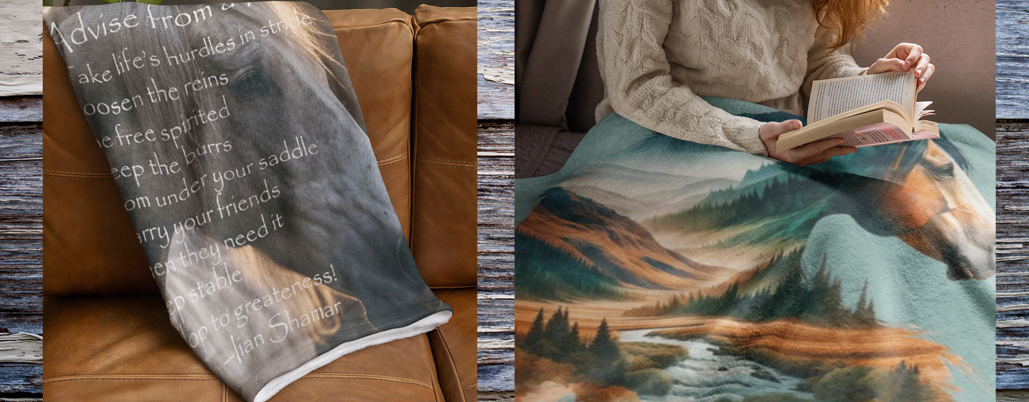 Whether you're curled up in your horse trailer, out at the ranch, or relaxing fireside after a long ride, this blanket brings warmth, comfort, and some things to remember as you go about life.